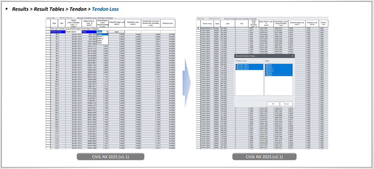 V předchozích verzích si uživatelé mohli zobrazit výsledky ztrát kabelů pouze pro jednu skupinu kabelů a jednu fázi výstavby najednou. Nyní tabulka výsledků podporuje vícenásobný výběr skupin kabelů i fází výstavby, což uživatelům umožňuje prohlížet více výsledků současně.