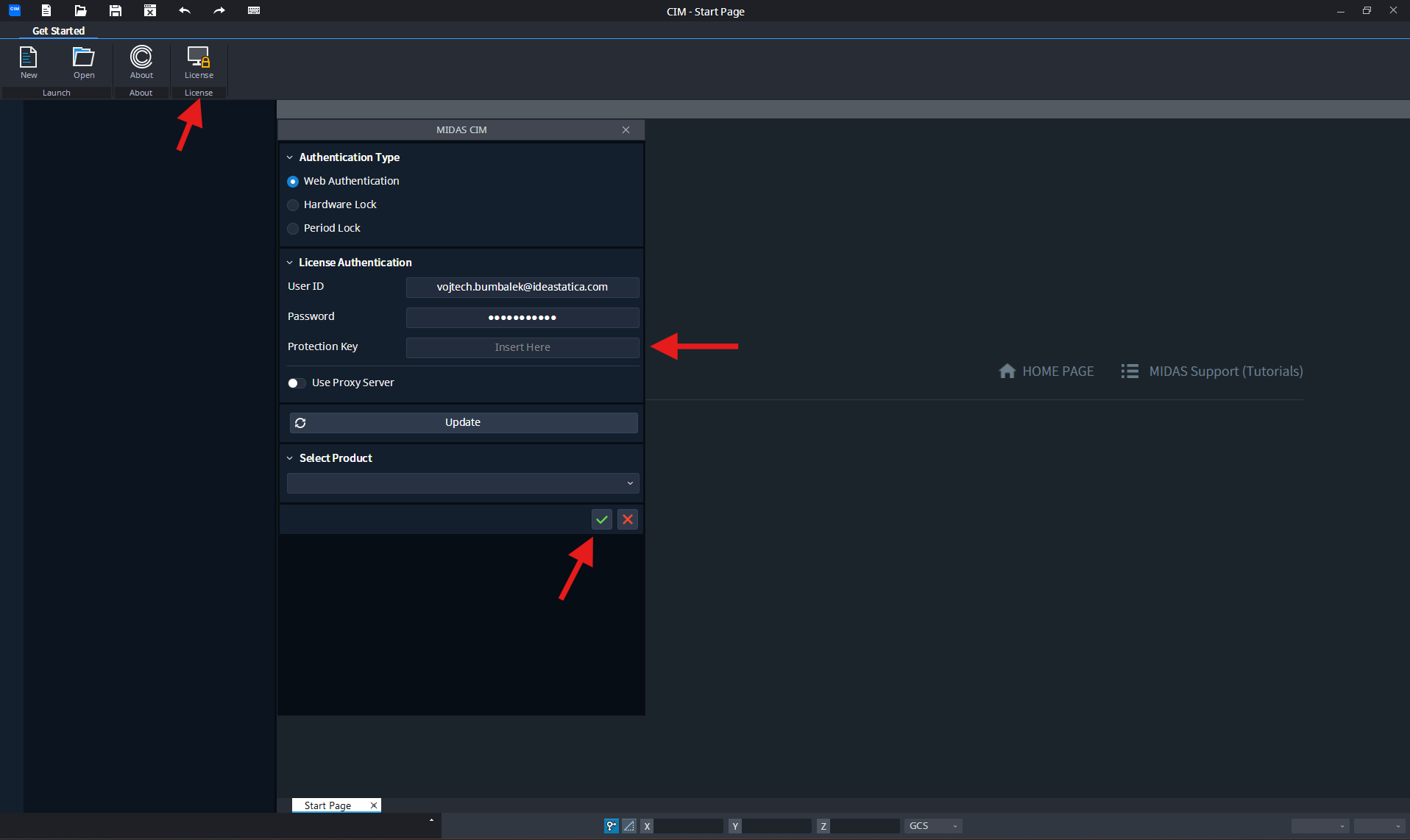 Abyste si mohli aktivovat licenci midas CIM, budete potřebovat tzv. Protection Key ID k samotné aplikaci - midas CIM.