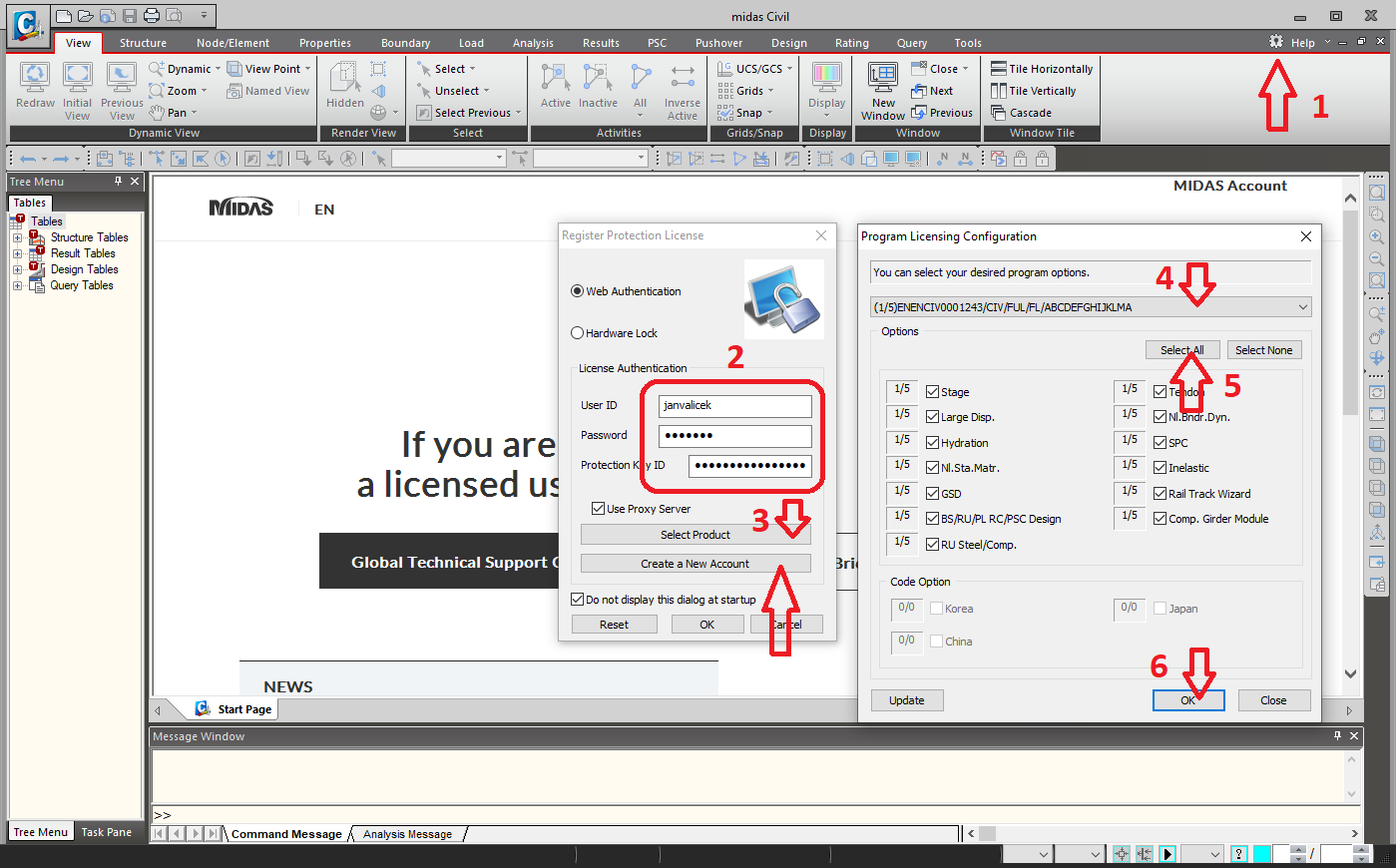 Aktivace licence midas civil