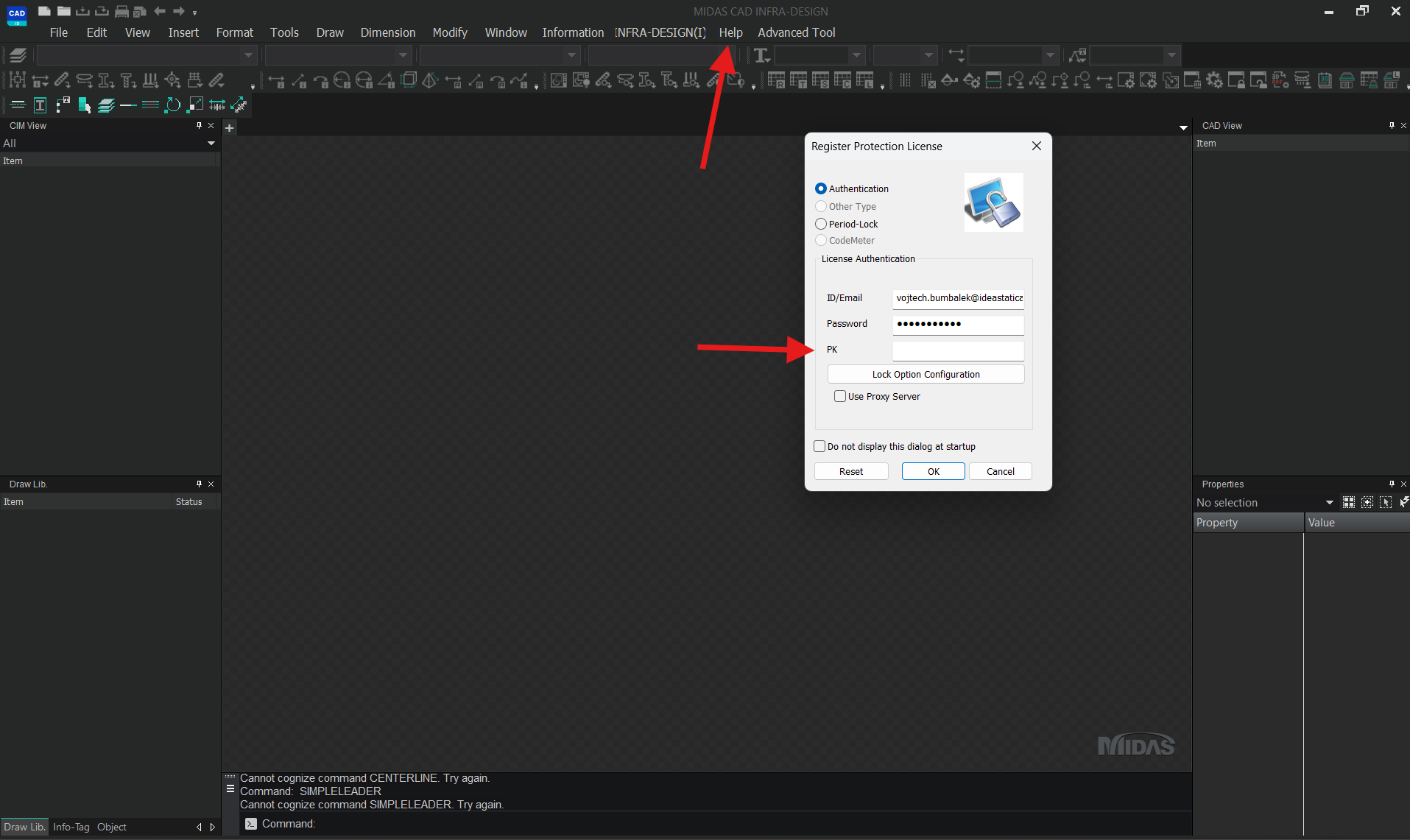 Aktivace licence midas Drafter/midas INFRA DESIGN
