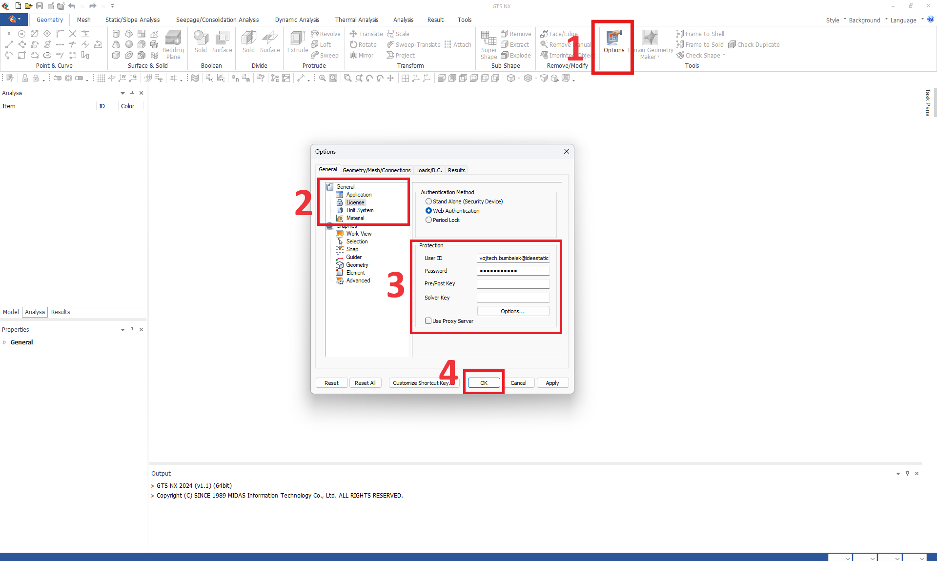 Abyste si mohli aktivovat licenci midas GTS NX, budete potřebovat přístupové údaje k samotné aplikaci - midas GTS NX, a ještě k tomu k tzv. Solveru