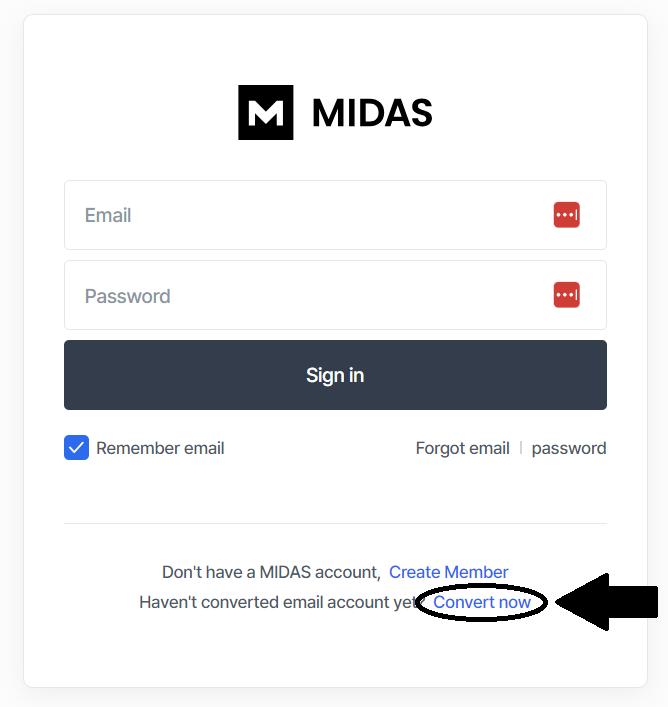 - Ano, většina produktů MIDAS podporuje přihlašování e-mailem prostřednictvím integrovaného systému e-mailových účtů. Tento systém bude postupně zaváděn pro jednotlivé produkty a budeme vás o tom informovat
